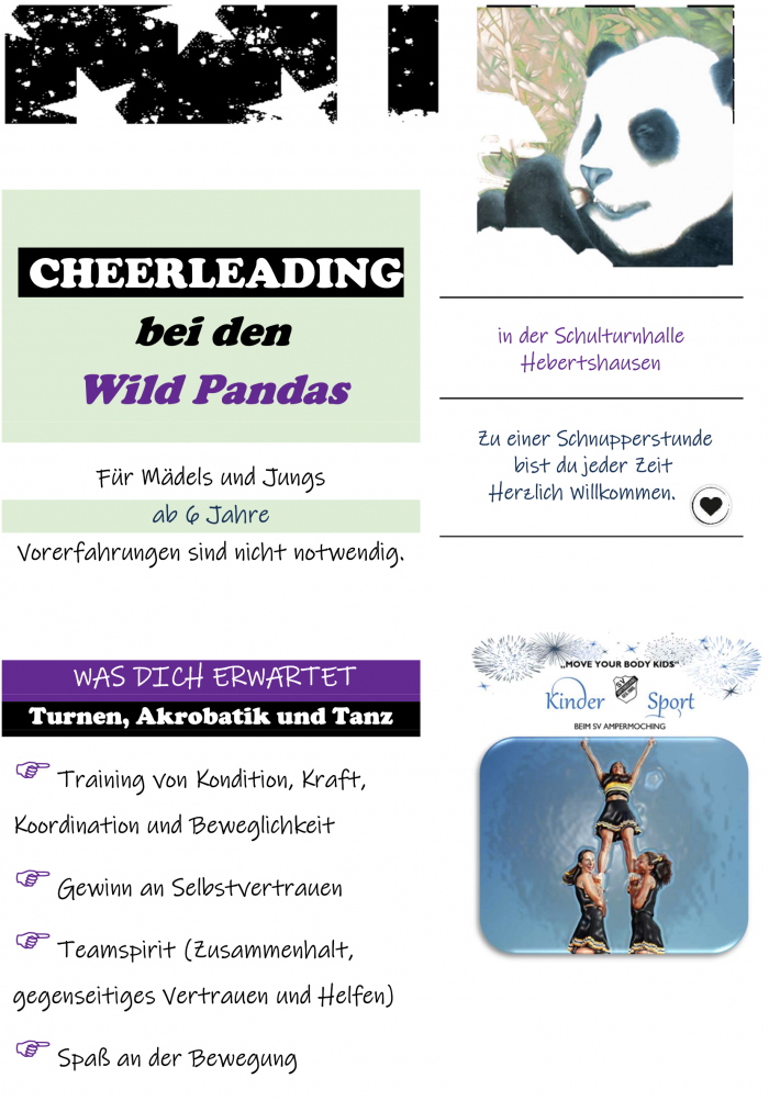 Dabei geht es in erster Linie darum, akrobatische Elemente in Gruppen oder zu zweit zu einer anspruchsvollen Choreographie zu verbinden und damit die eigene Sportmannschaft bei sportlichen Veranstaltungen zu animieren als auch das Publikum zu begeistern.