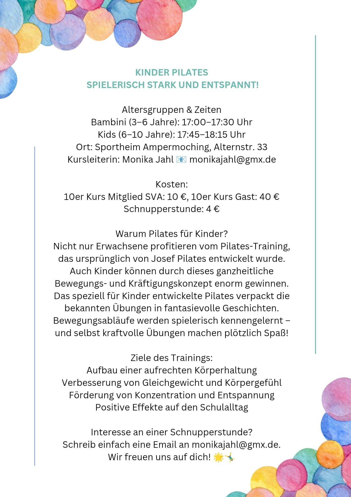 Von Klassikern wie Step Aerobic, Pilates und Rückenfit bis hin zu neuen Fitnesstrends wie Balance Swing, Yoga, Kinder Pilates, Zumba oder Fit for Defence. Jeder Kurs ist einzigartig und besticht mit seiner Kombination aus Kräftigung, Ausdauer, Koordination und viel Spaß.